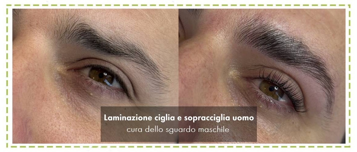 Proprio per questo, la laminazione sopracciglia è un trattamento particolarmente apprezzato anche nel pubblico maschile: non cambia la forma, non assottiglia e non femminilizza, ma aiuta a mettere ordine, disciplinare i peli e rendere l’arcata più pulita e curata. Il risultato è uno sguardo più ordinato, senza perdere naturalezza.